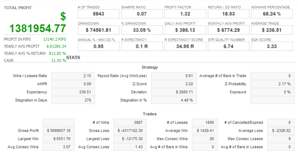 0.1lot単利運用で17年間のQuant Analyzer 4の結果